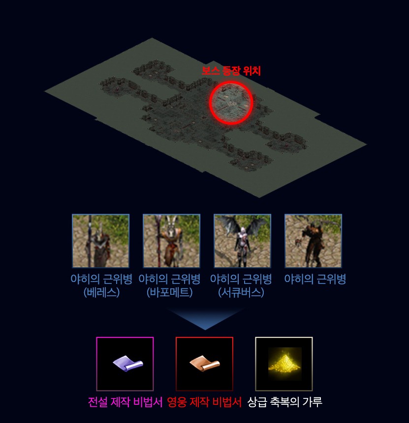 야히가 드롭하는 야히의 심장과 전설 제작 비법서를 통해 신규 '야히의 세트' 아이템