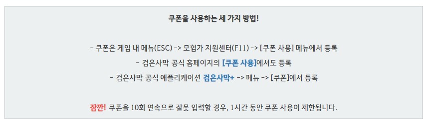 오늘 두번째로 전해드릴 소식은 검은사막 쿠폰