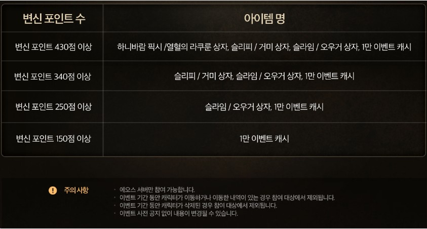 이벤트 기간동안 변신 포인트를 일정 점수 이상 달성할 시,