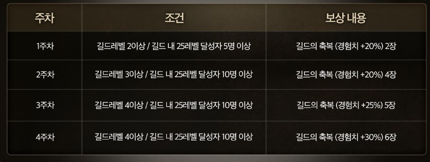 이벤트 기간내에 주차별 조건을 달성한 길드에게 매주 정기점검 이후