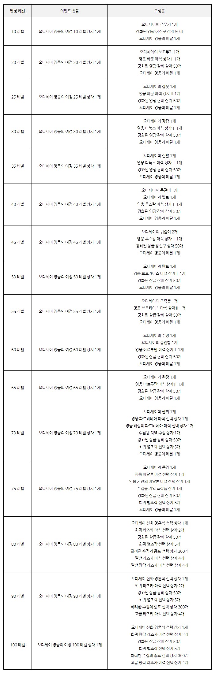 오디세이 영웅장비 풀세트 등 다양한 보상을 얻을 수 있는
