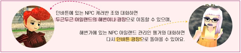 두근두근 아일랜드 광장에 있는 NPC 횃불 관리인과 대화하고