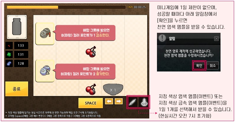 두번째, 또 다른 가이드 퀘스트인 천연 염색 이벤트도 진행 되는데요.