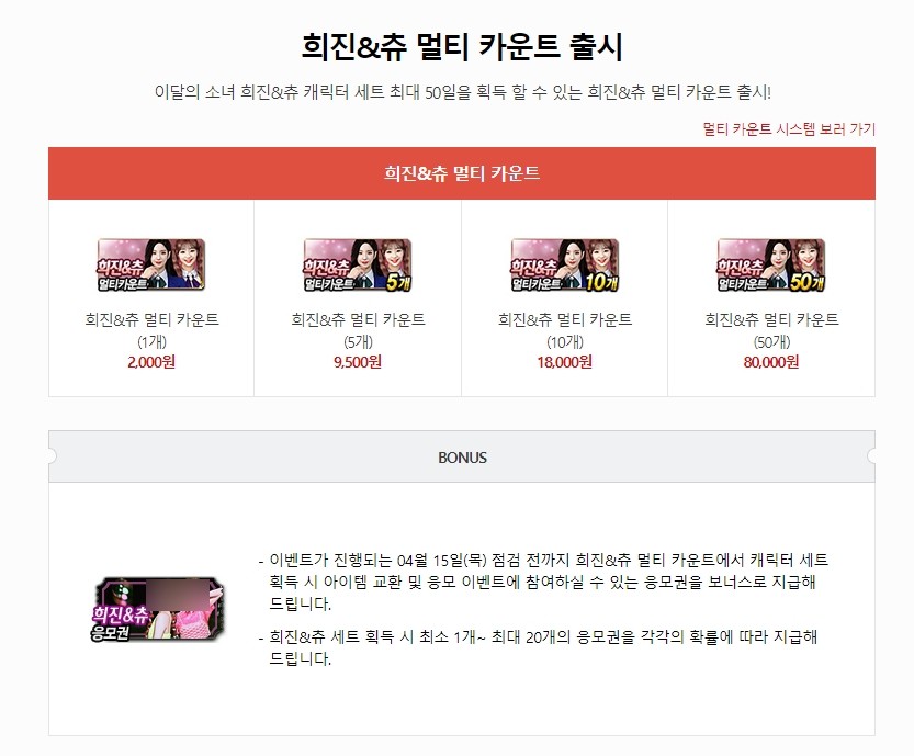 이달의소녀 희진&츄 캐릭터는 멀티카운트로 출시 되는데요