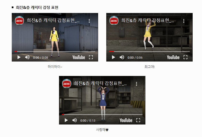 피아식별 강화, 캐릭터 피격 효과, 고스트 이펙트, 감정 표현 3종씩,