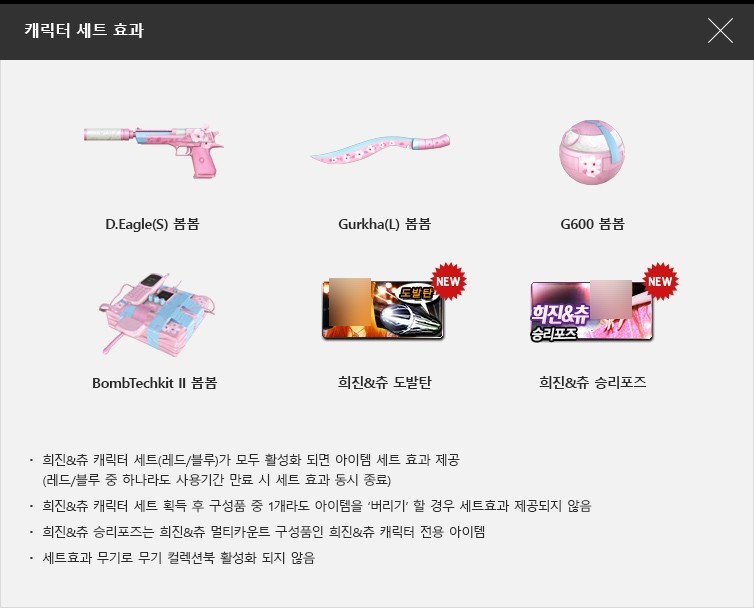 캐릭터 세트 효과는 희진 & 츄 캐릭터 세트가 모두 활성화 되면