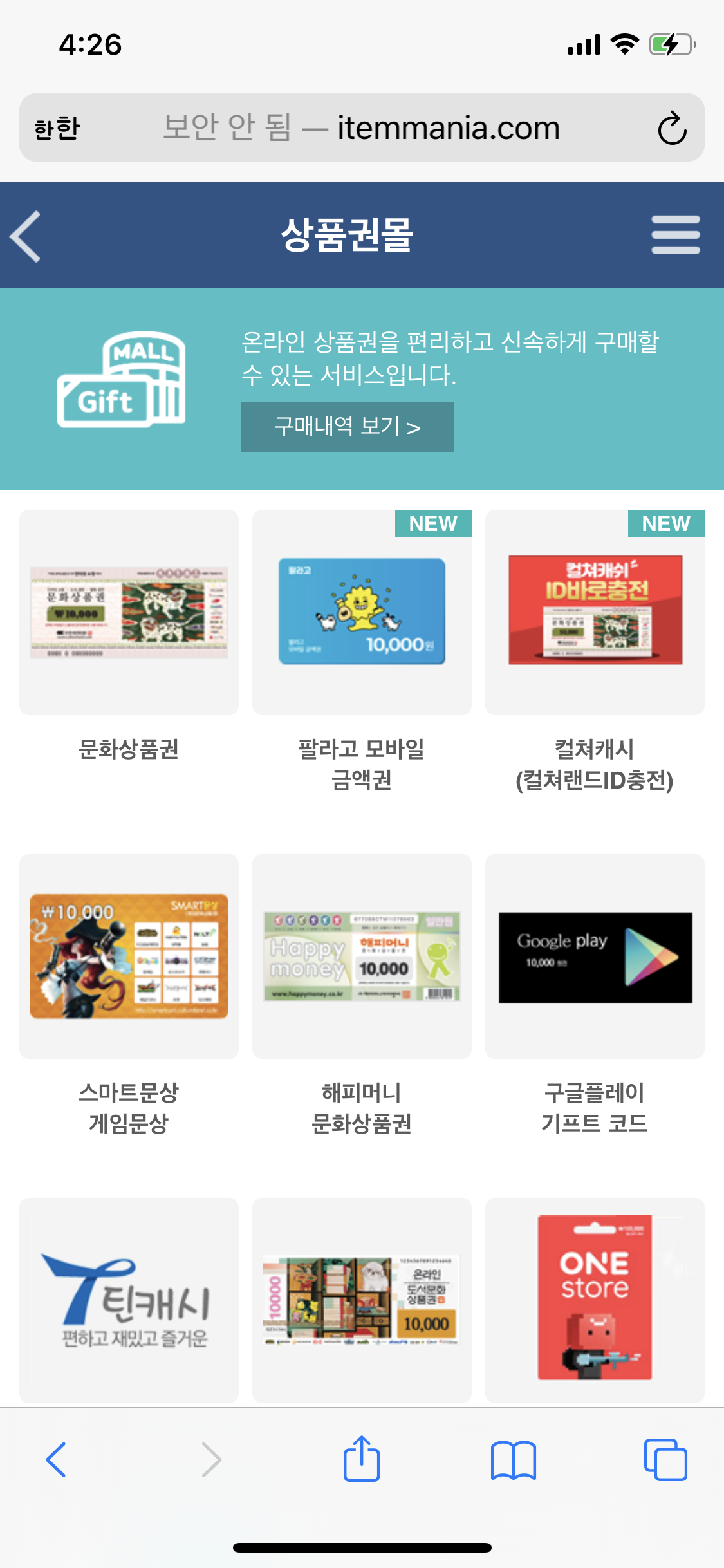 구글 기프트 카드나 아이템매니아 마일리지 등 다양한