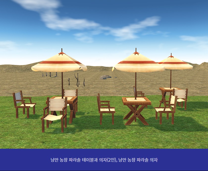 낭만 농장 퍼걸러, 낭만 농장 테이블과 의자 (2인), 낭만농장 파라솔 의자,