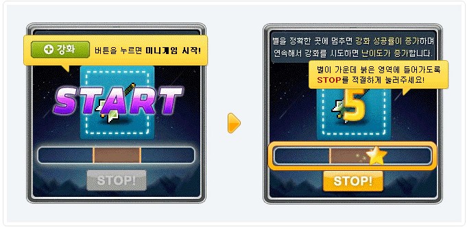 강화 성공확률을 높여줄 수 있는 미니게임이 시작됩니다.
