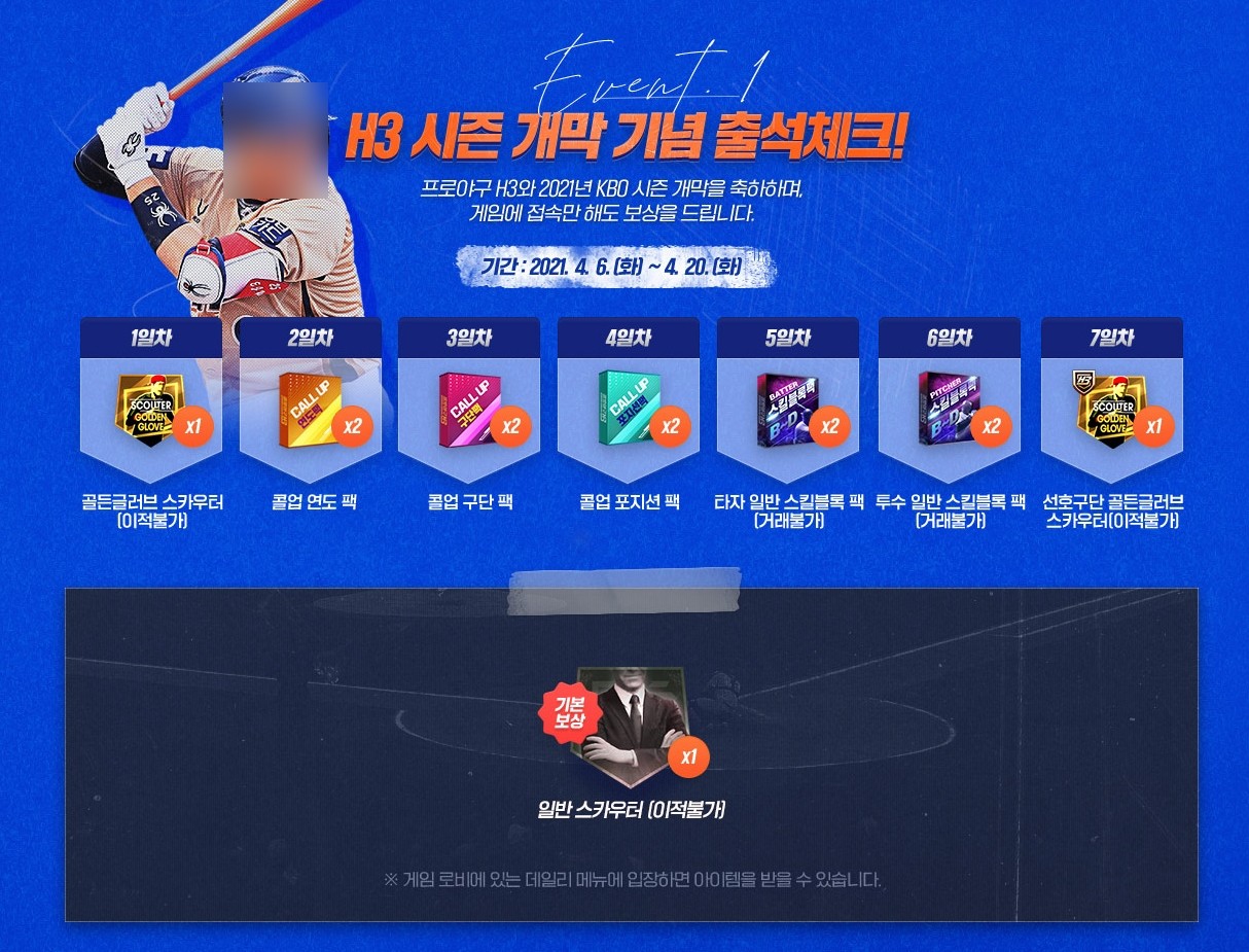 프로야구h3 에 접속만 해도 보상을 받을 수 있는 이벤트입니다~