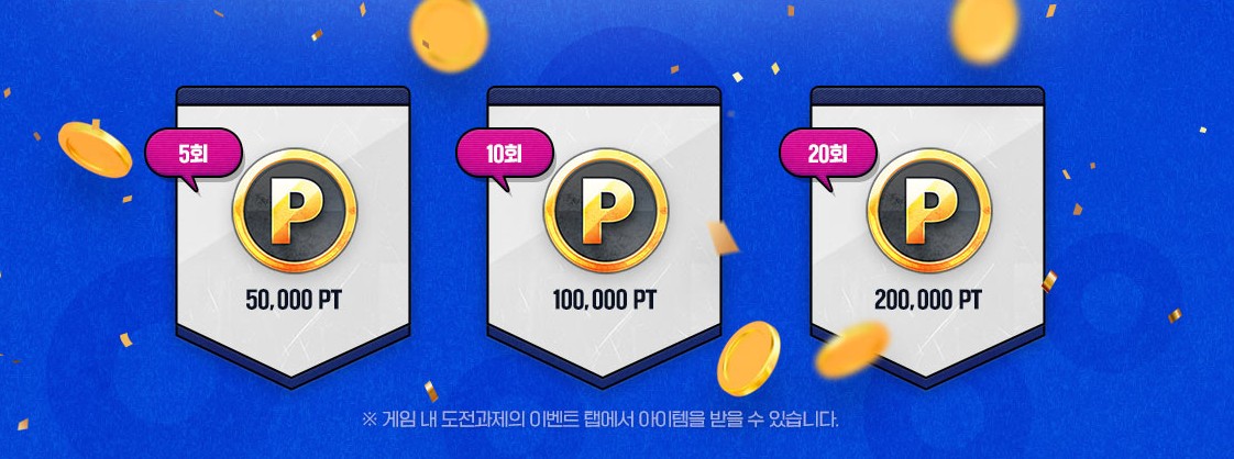 20회 수행시 200,000PT를 지급하며 게임 내 도전과제의 이벤트 탭에서