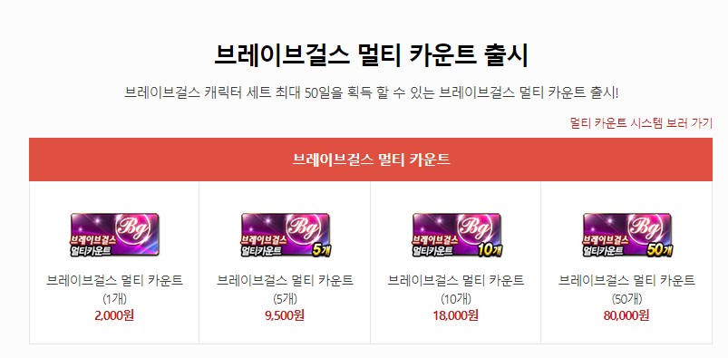 브레이브걸스 멀티 카운트에서 캐릭터세트 획득 시 아이템 교환 및