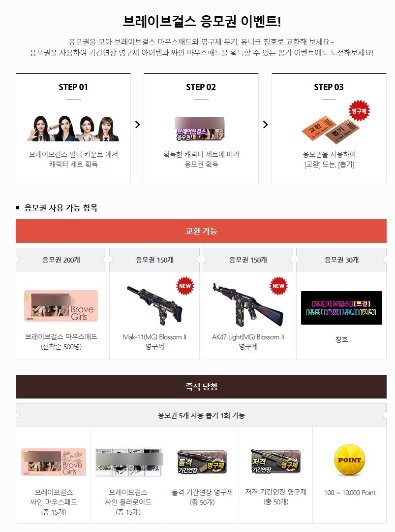 응모권을 모아 브레이브걸스 마우스패드와 영구제 무기,