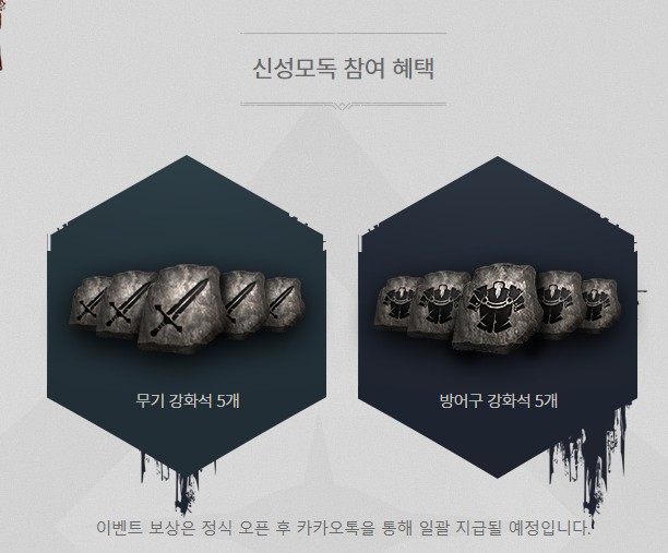 신성모독 이벤트 참여 시 무기 강화석 5개와 방어구 강화석 5개를