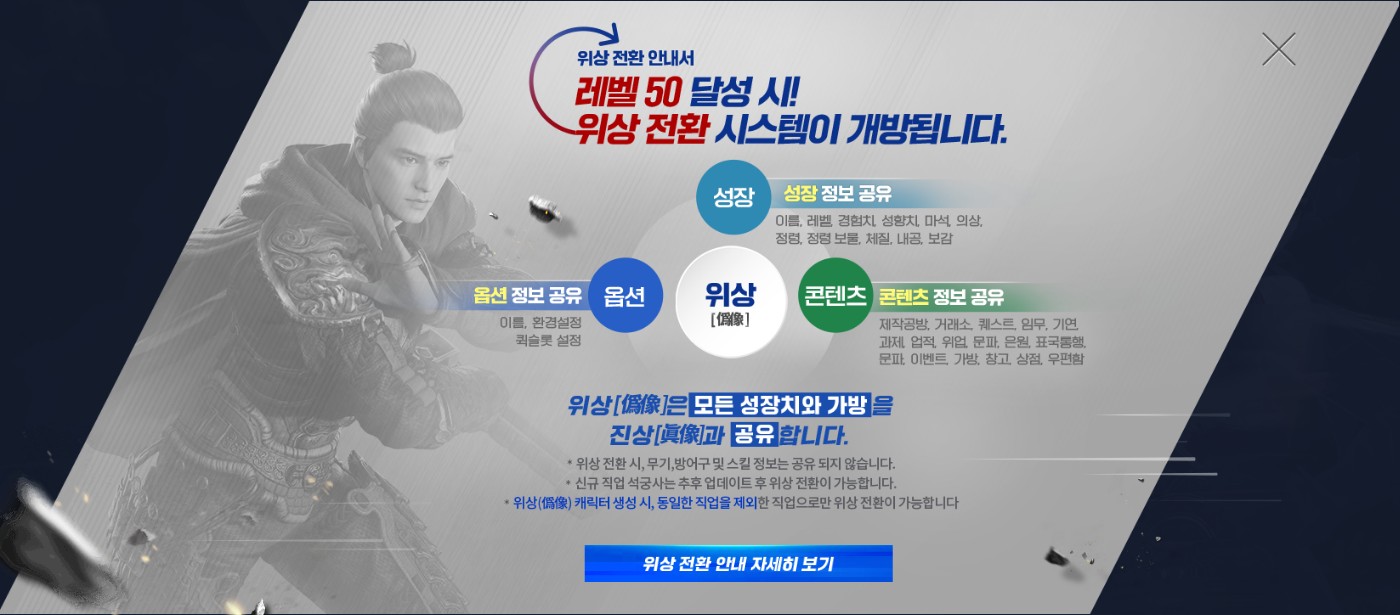 레벨 50 달성 시 위상 전환 시스템이 개방 됩니다.