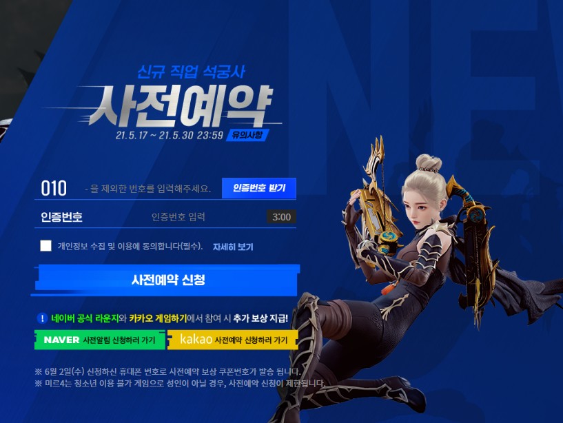 네이버 공식 라운지 및 카카오 게임하기에서 사전예약 참여 시