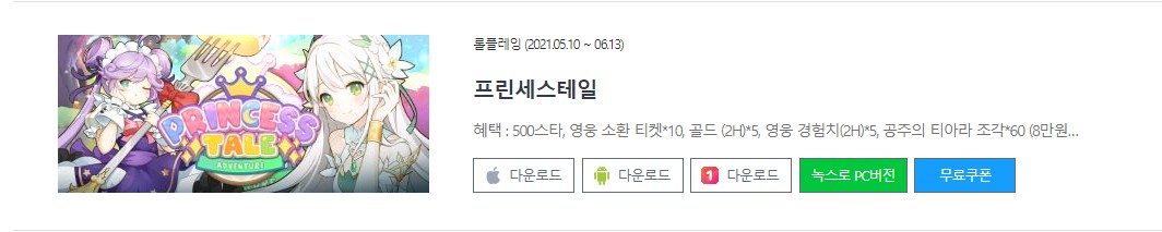 프린세스 테일 쿠폰 이외에도 로드오브워 쿠폰, 대항해의전설 쿠폰 등