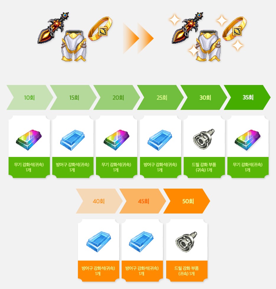 50회 강화 시 드릴 강화 부품 (귀속) 1개를 지급한다고 하니