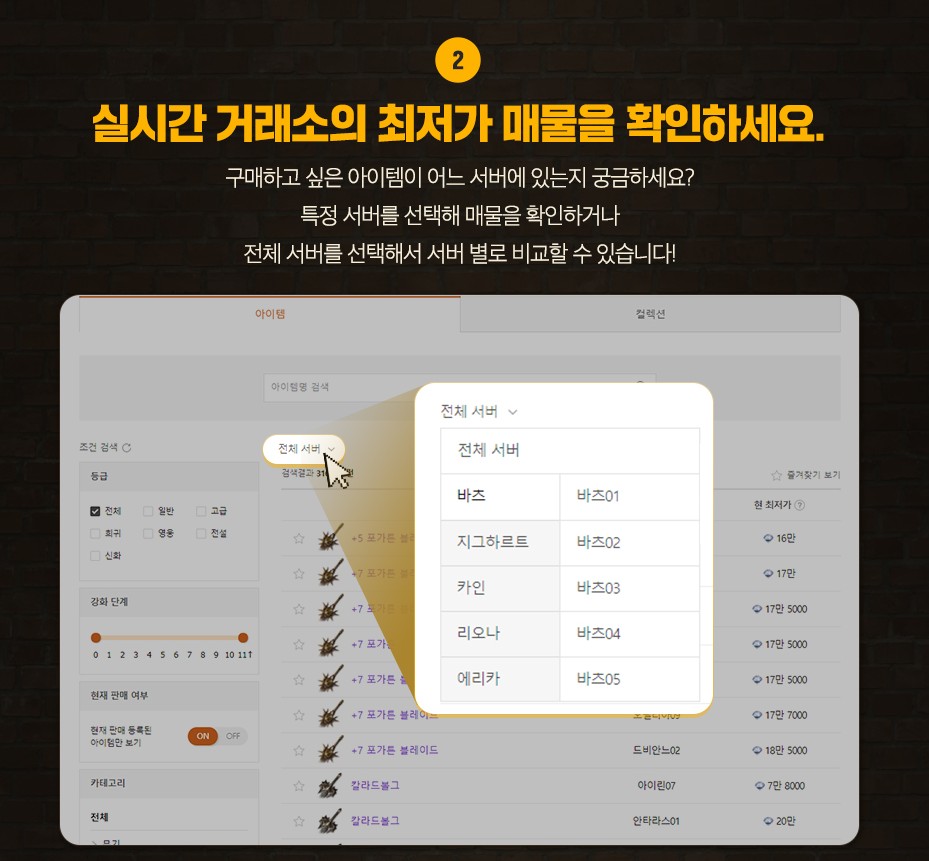 구매하고 싶은 아이템이 어느 서버에 있는지 궁금하다면,
