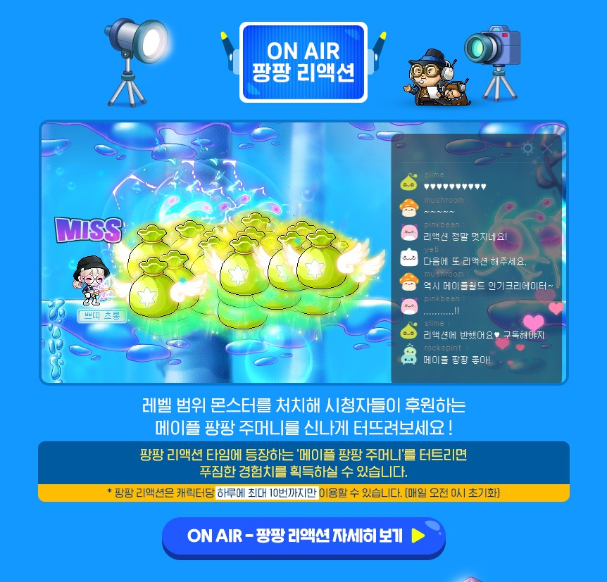 두번째 이벤트는 온에어 팡팡 리액션 입니다.