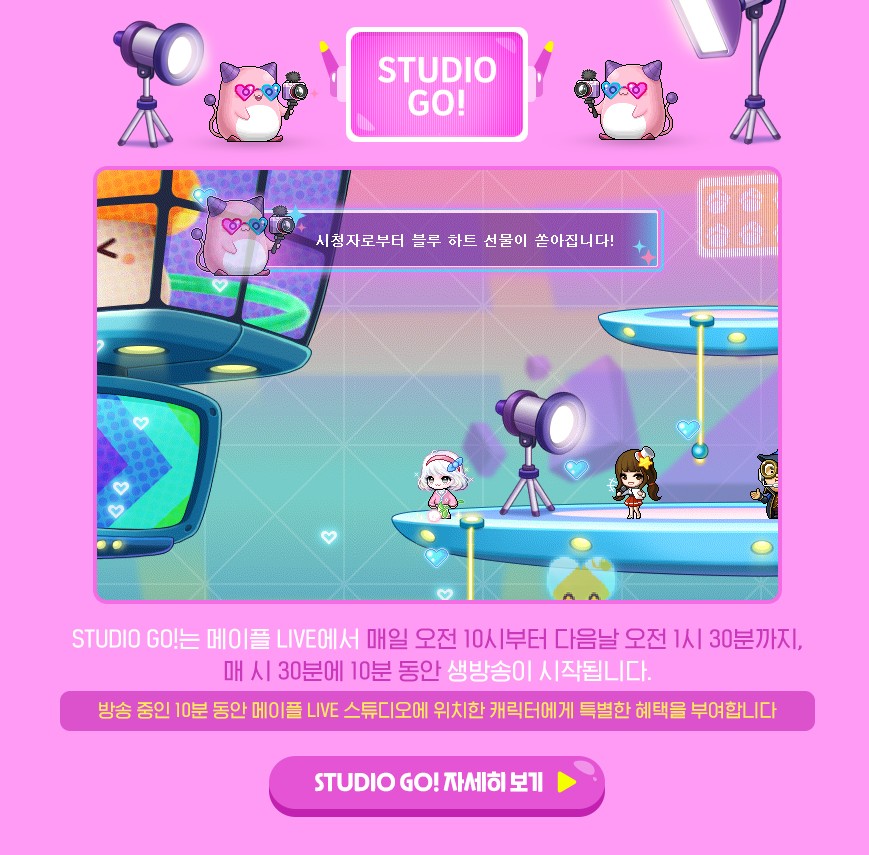 스튜디오 고는 메이플 라이브에서 매일 오전 10시 부터 다음날