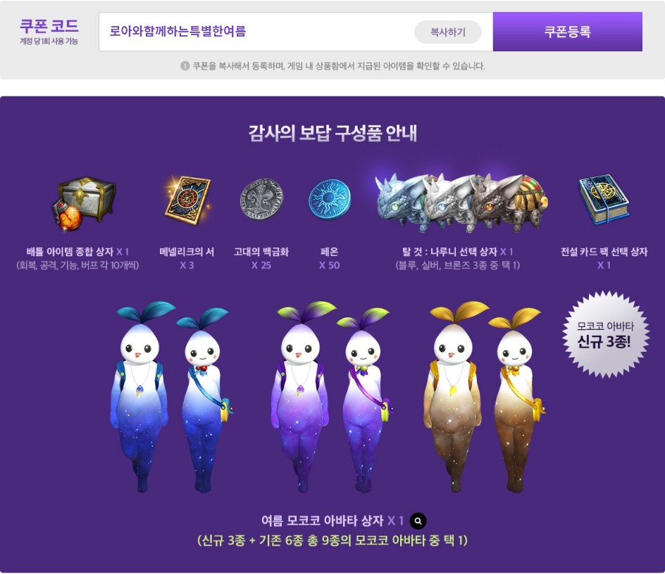 쿠폰 이름은 로아와함께하는특별한여름 이며