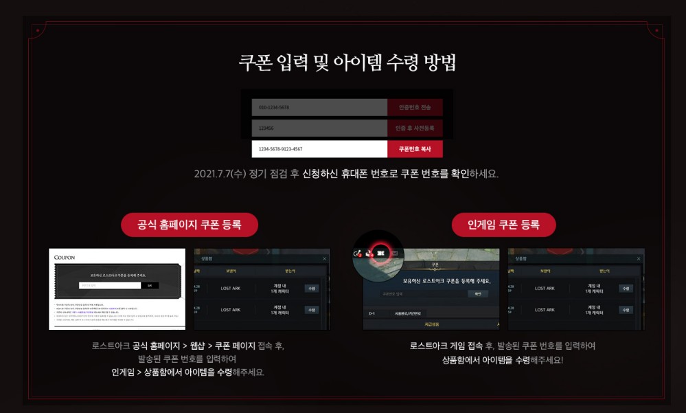 쿠폰 번호를 확인 한 후 공식 홈페이지나 인게임을 통해 등록이 가능한데요.
