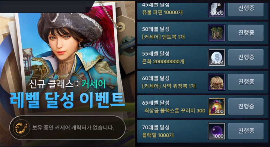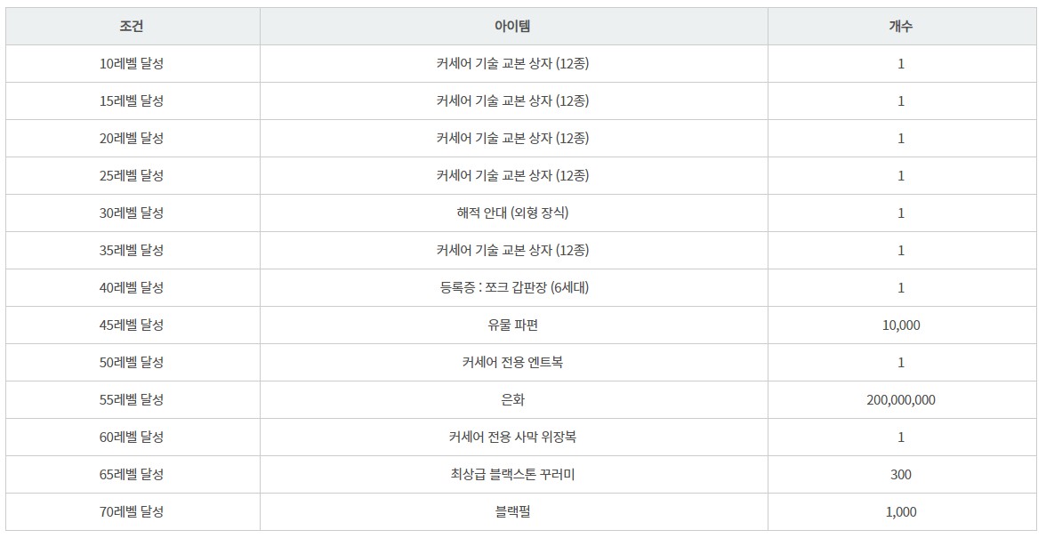 커세어 레벨에 따라 보상을 획득할 수 있는 이벤트로