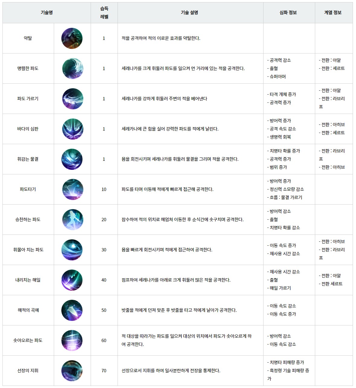 바다의 심판이 있으며 레벨 10에 습득할 수 있는 기술은