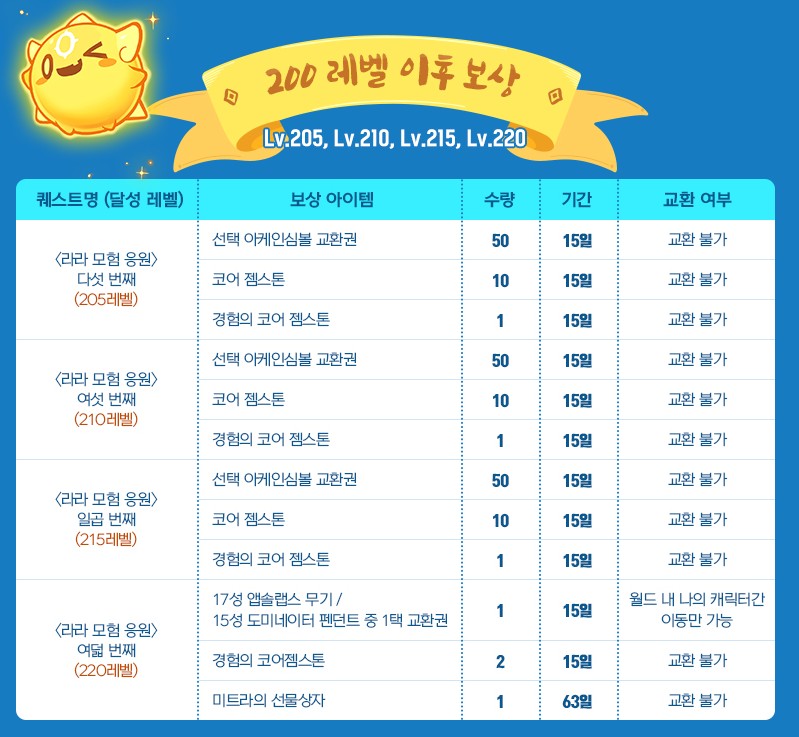 다음은 메이플 라라 이벤트 200 레벨 달성 보상입니다.