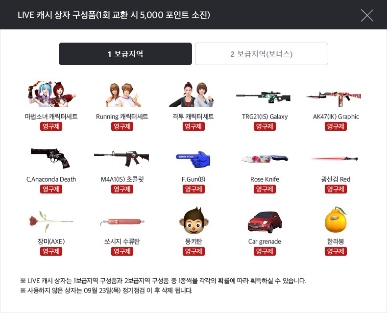 획득한 포인트를 이용하여 라이브 캐시 상자 또는 라이브 영구제 상자로