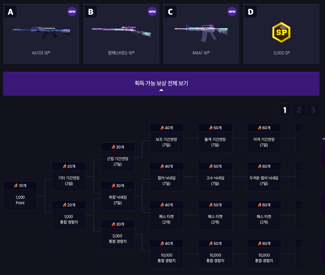 3,000 SP 까지! 이 외에 다양한 패스티켓 및 기간 연장,