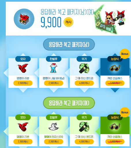 이번 패키지들은 가격도 무난하고 전체적으로 귀엽고 깜찍한 코디라서