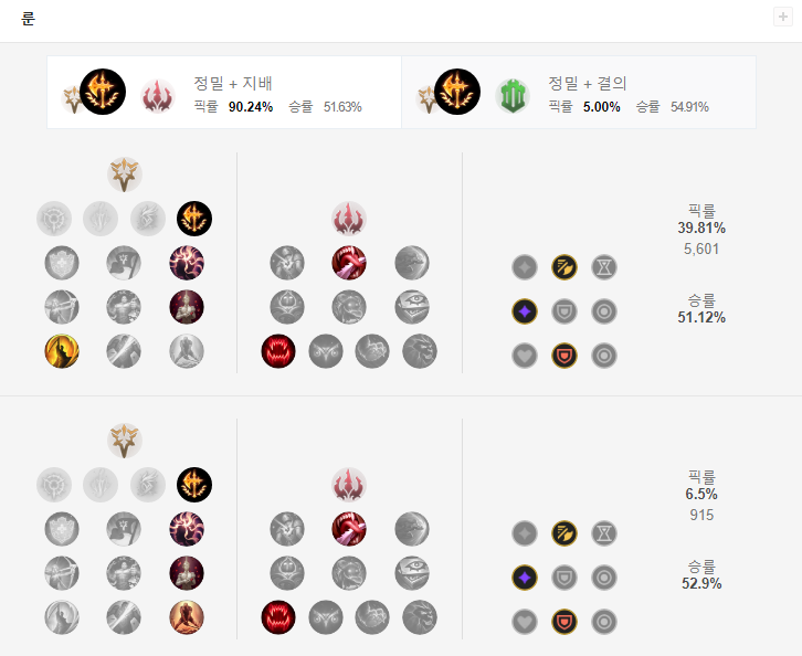정밀은 정복자 > 침착 > 전설 : 핏빛 길 > 최후의 일격을 선택합니다.