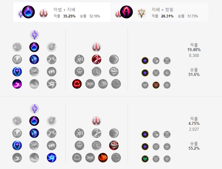칼바람 하이머딩거의 룬은 마법 + 지배를 선택합니다.