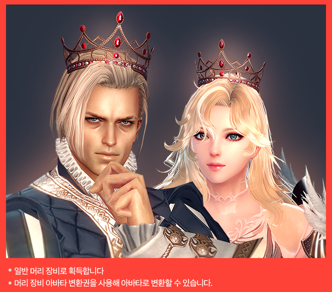 | 15레벨 | 화려한 루비 왕관 (이벤트) | 로센리엔의 아바타 염색 앰플 (증정) 2개 |