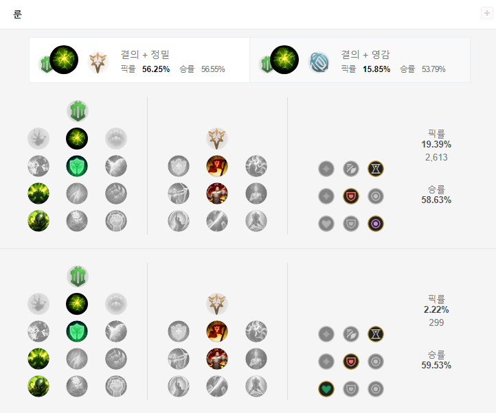 칼바람 렐의 룬은 결의 + 정밀을 선택합니다.