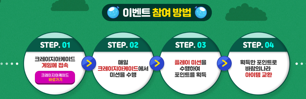 오늘은 바람의나라 X 크레이지아케이드 콜라보 이벤트 정보를 가지고 왔습니다.