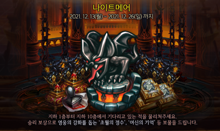 나이트메어 이벤트는 2021년 12월 13일 ~ 12월 26일까지 진행되는 이벤트입니다.