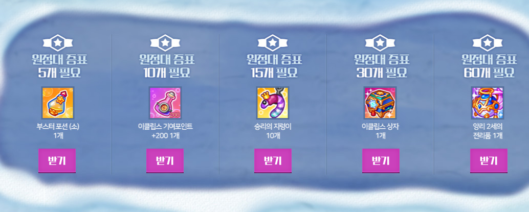 원정대 증표 5개 : 부스터 포션(소) 1개