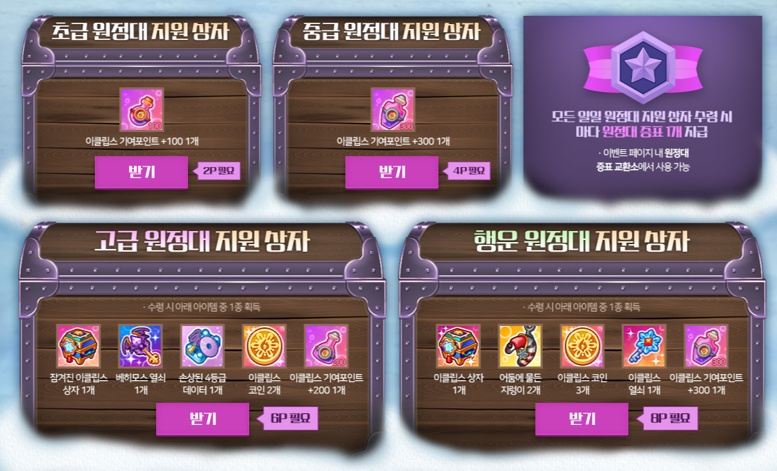 *모든 일일 원정대 지원 상자 수령 시 원정대 증표 1개가 지급됩니다.