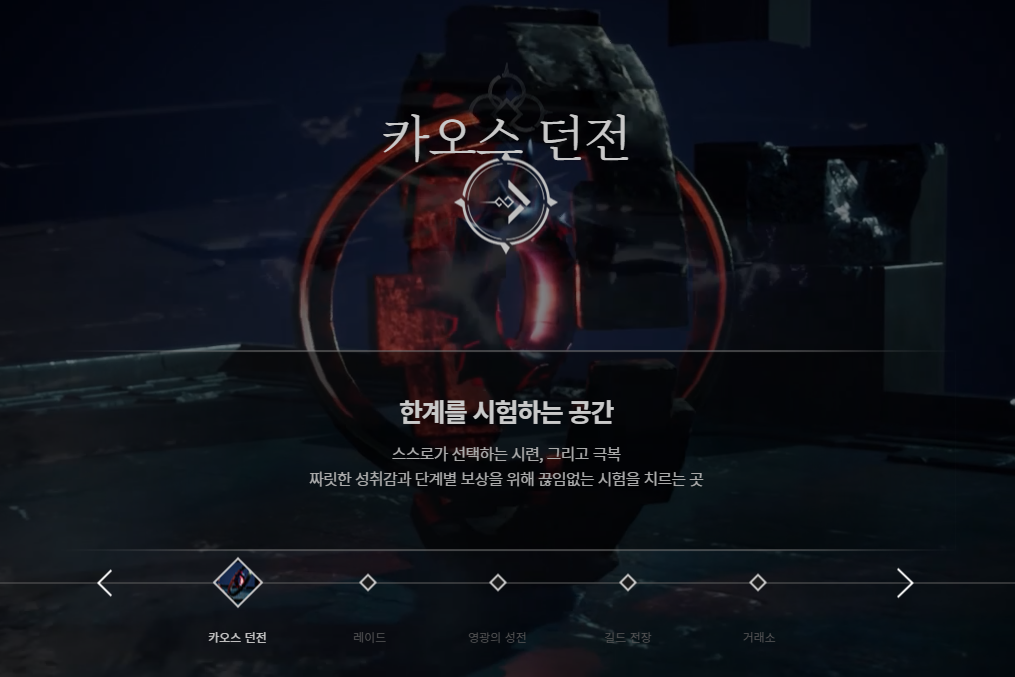 언디셈버 주요 콘텐츠로 카오스 던전, 레이드, 영광의 성전, 길드 전장, 거래소가 있습니다.