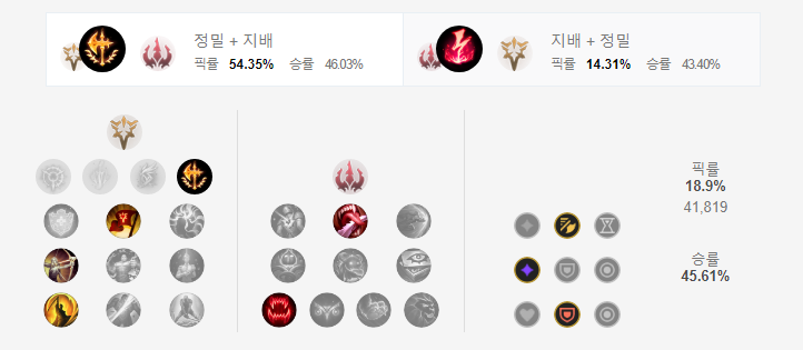 정밀은 정복자 > 승전보 > 전설 : 민첩함 > 최후의 일격을 선택하고