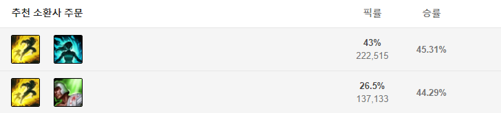 칼바람 루시안의 추천 스펠은 점멸 + 정화입니다.