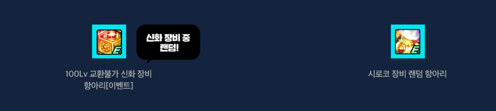| 95레벨 | +7강화 검은 성전의 기억 무기 선택 상자, 100Lv 레전더리 장비 풀세트 상자 |