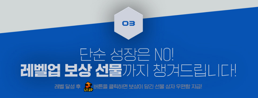 일정 레벨을 달성하면 Lv.UP 버튼을 클릭하여 레벨업 보상을 받을 수 있습니다.