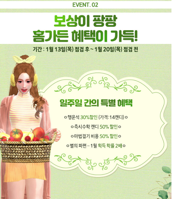 이벤트 기간동안 1월 13일 신상 캐시 패션 아이템(30일 이상) 구매 시