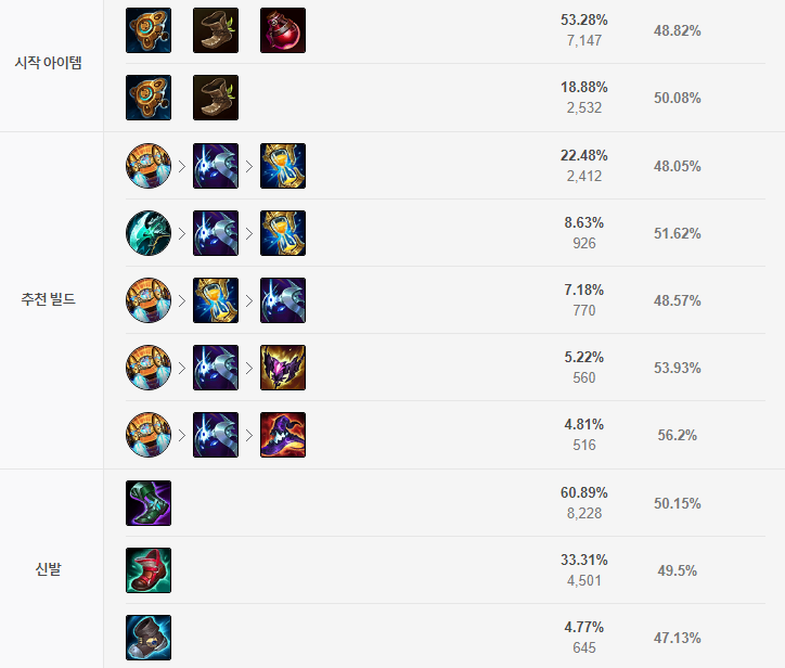 칼바람 블라디미르의 시작 아이템은 마법공학 교류 발전기 + 장화를 구매하고 시작합니다.
