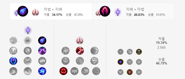 칼바람 블라디미르 룬은 마법 + 지배를 선택합니다.