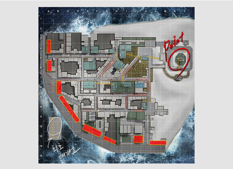 붉은색 표시 초반 지역의 회복 키트 & 방탄복 드랍 확률이 증가합니다.